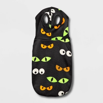 Turn your cute furry friends into creepy creatures this Halloween with the Glowing Eyes Hoodie Dog and Cat Costume from Hyde & EEK! Boutique™. Featuring a black onesie with multicolored eyes of various shapes, this full-body costume includes a hood and two leg openings for functional flair. Plus, the eyes glow in the dark, so you can bring your pets along for some nighttime trick-or-treating fun. Intended for cats and small dogs, this lightweight glowing eyes costume is sure to get people talking and tails wagging.