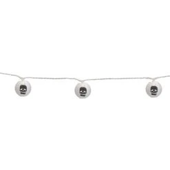 Northlight 10-Count White and Black Skull Paper Lantern Halloween Lights, 8.5ft White Wire