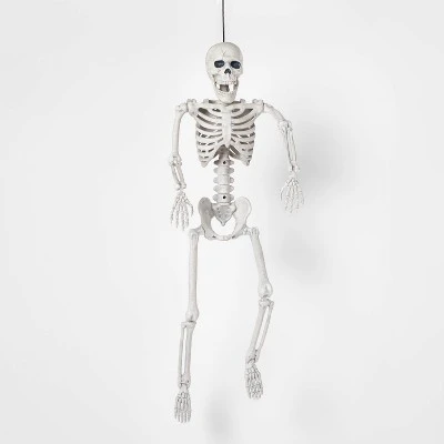 Add creepy fun to your decor with this 24-inch Posable Skeleton M Halloween Decorative Mannequin from Hyde & EEK! Boutiqueâ„¢. This posable skeleton features a cracked accent on the skull and bony texture for a realistic look that lends scary flair to your Halloween decor. Hang it outside the window or at the back of your entryway door along with pumpkin decorative props and more for frightening appeal.