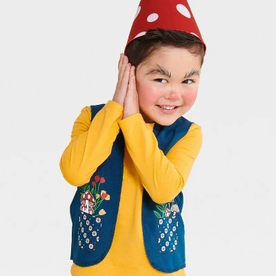 Lend a touch of holiday style to your toddler’s Halloween looks with the Gnome Halloween Costume Vest with Headpiece from Hyde & EEK! Boutique™. This gnome costume set includes a blue vest with flowers and mushrooms print and a red hat with polka-dot print to make it more fun to wear. Made with soft and lightweight fabric, this Halloween costume is suggested for ages two and above.
