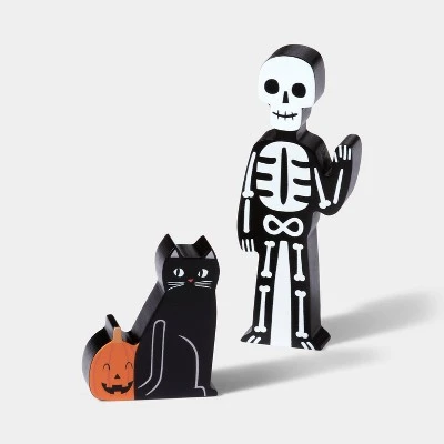 Update your collection of Halloween collectables with this Wood Mini Mantle Skeleton/Cat/Tombstone Halloween Decor from Hyde & EEK! Boutique™. This set of assorted Halloween props includes a cat, skeleton, tombstone and a creepy tree accent with pumpkins on it. These mini-sized props are ideal for placement on a mantle, shelf or console table. You can display them together or along with other Halloween-themed props to complete your festive setting.