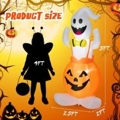 Costway 5 FT Inflatable Halloween Pumpkin Ghost Blow-up Yard Decoration with LED Lights